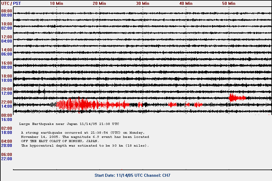 Japan Earthquake 6.9 M 11/14/05 21:38:54 UTC